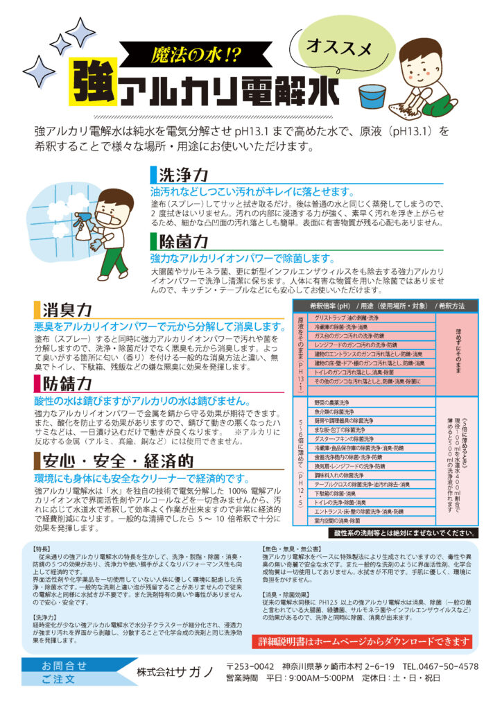 お掃除のプロ㈱サガノがオススメするお掃除や除菌に役立つ「強アルカリ電解水 イオンちゃん」